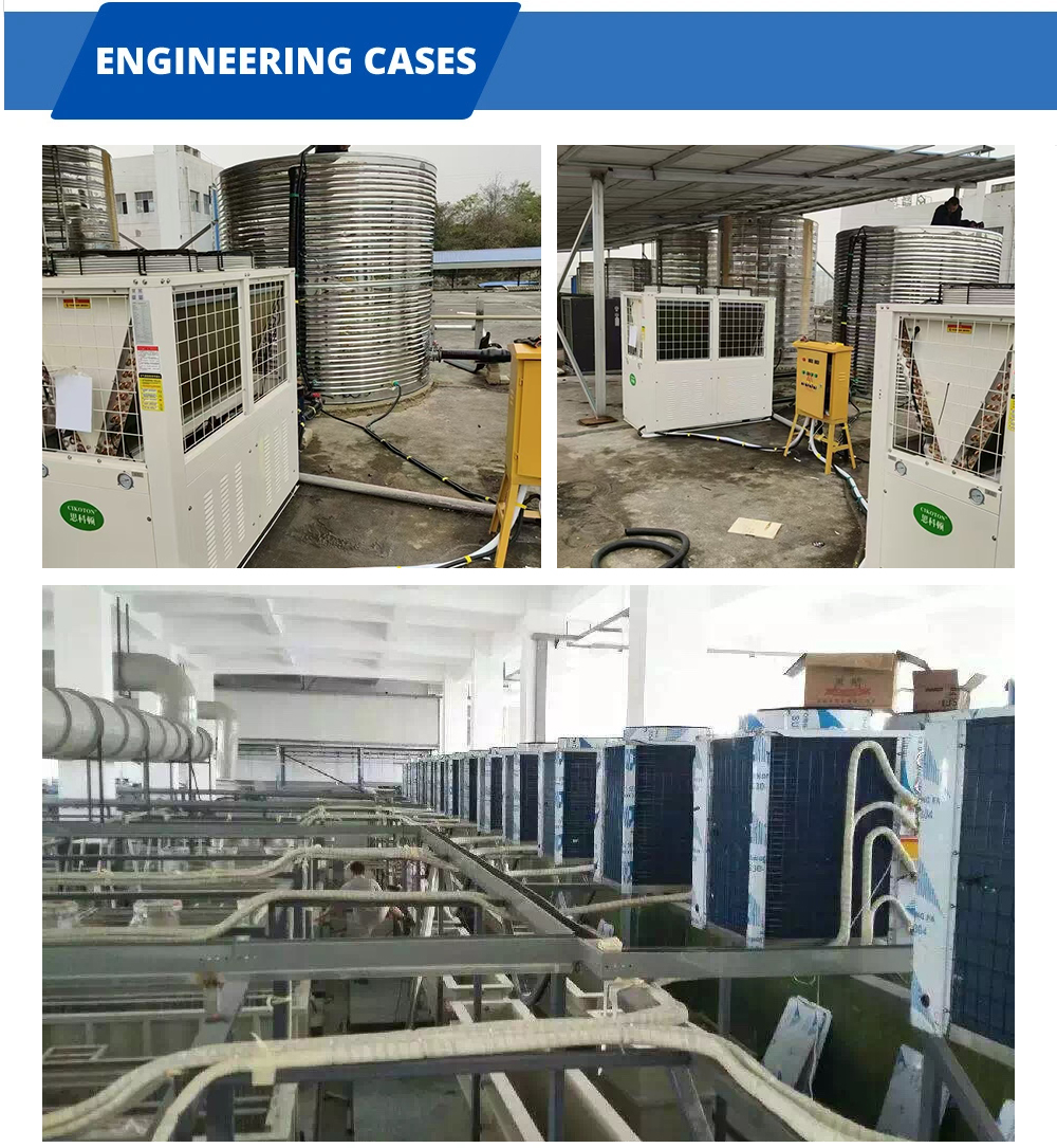 Wide Range of Applications: these air to water heat pumps could meet the hot water and heating requirements of different places, such as villas, families, schools, factories, hotels, hospitals, spacenters, sauna centers, water parks, etc.